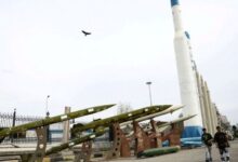صواريخ إيرانية معروضة في حديقة في العاصمة طهران، 26 مارس 2026 طهران:…